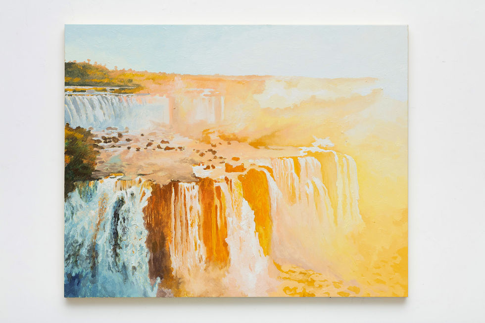 Branca - três pinturas de cachoeiras de Foz do Iguaçú. "Reza, reza o rio" 190x120cm, "Córrego pro rio" 100x80cm, "Rio pro mar" 100x80 cm.